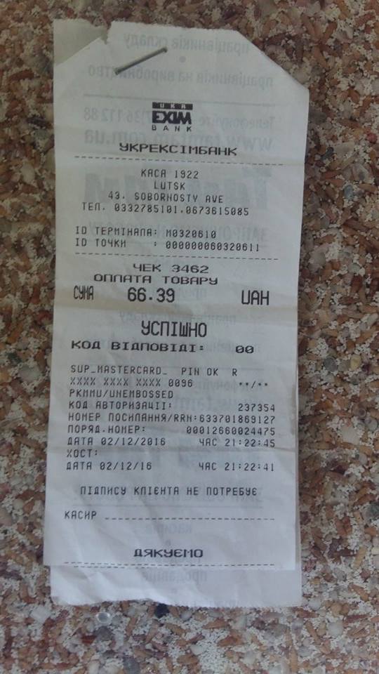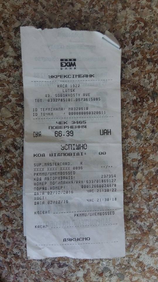Оскільки він розраховувався карткою, то й операцію повернення касир зробив через термінал. На чекові вказано, що операція пройшла успішно. Та досі гроші на картку не надійшли.