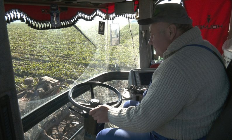 За три дні, каже комбайнер Андрій Петрочук, половину врожаю зібрали.«Добре виростив – добре зібрав. Коли гарна погода, то і гарно збирається. Відносно суха земля має бути, а зараз якраз для копки нормальна погода», – каже комбайнер.