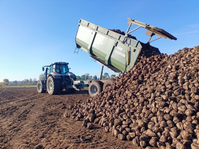Копати буряки розпочали півтора тижня тому. Коренеплоди вантажать на край поля. Вдень вивозить до 40 причепів.Зі слів агронома фермерського господарства Тараса Навроцького, цього року цукрових буряків посіяли більше, але через посушливе літо очікують на менший врожай.