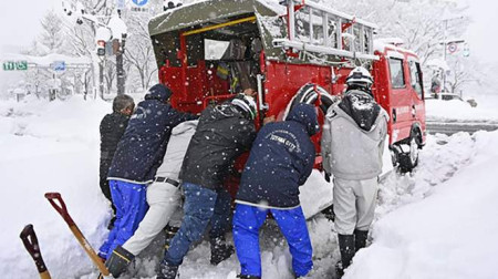 На узбережжі Японського моря і на північному острові Хоккайдо 4 дні тривають сильні снігопади. Вони накрили префектуру Фукуї в центрі країни.