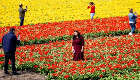 У вихідні в регіоні Болленстрік, що славиться вирощуванням цибульних рослин, попри заклики місцевої влади було дуже людно. Охочі до гарних світлин обходили дорожні бар’єри та закриті провінційні дороги, щоб дістатися до полів і сфотографуватися серед квітів.