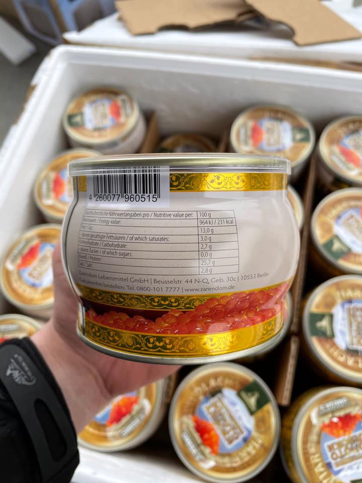 В результаті повного митного огляду зазначеного транспортного засобу, крім заявлених в митній декларації товарів, виявлено 507 банок ікри лососевої «Premium Gold Gorbuscha Zarendom» загальною вартістю 426,4 тис. грн.