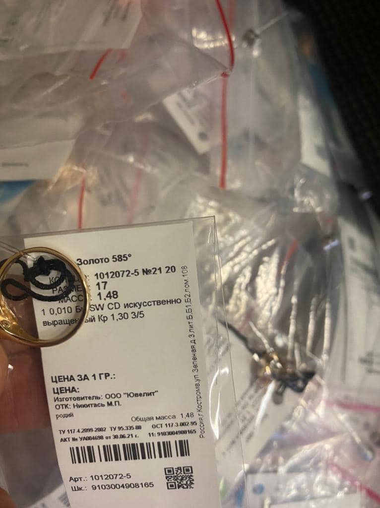А додатково, в кабіні транспортного засобу, під водійським сидінням було виявлено ювелірні вироби із золота 585 проби та срібла, теж виробництва Росії вагою брутто 1,5 кг.