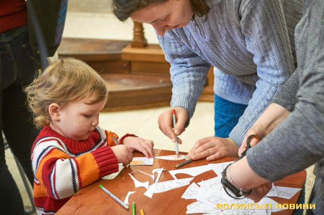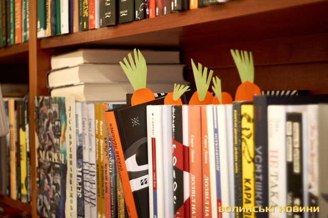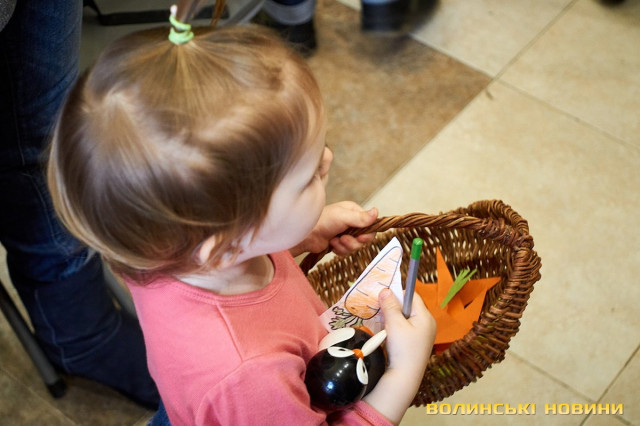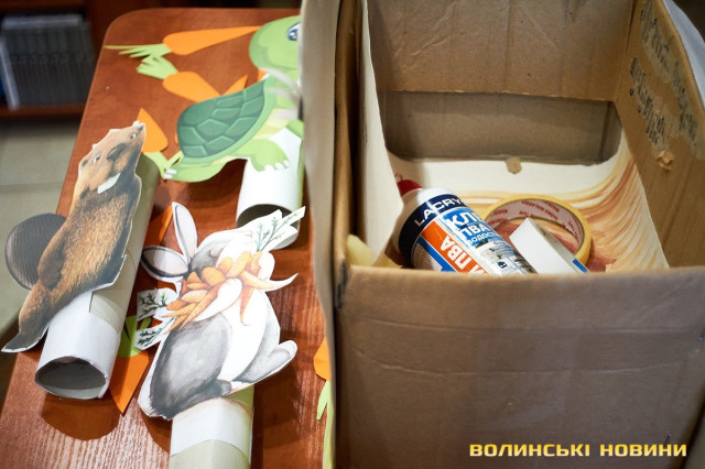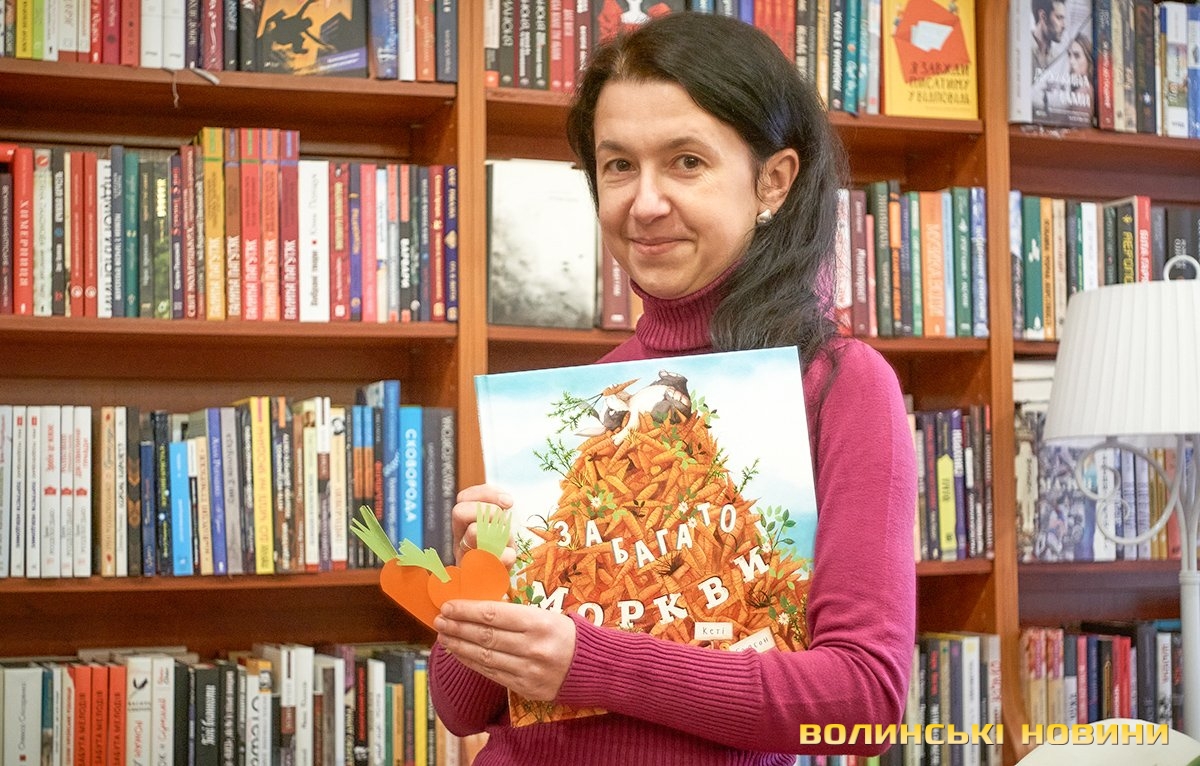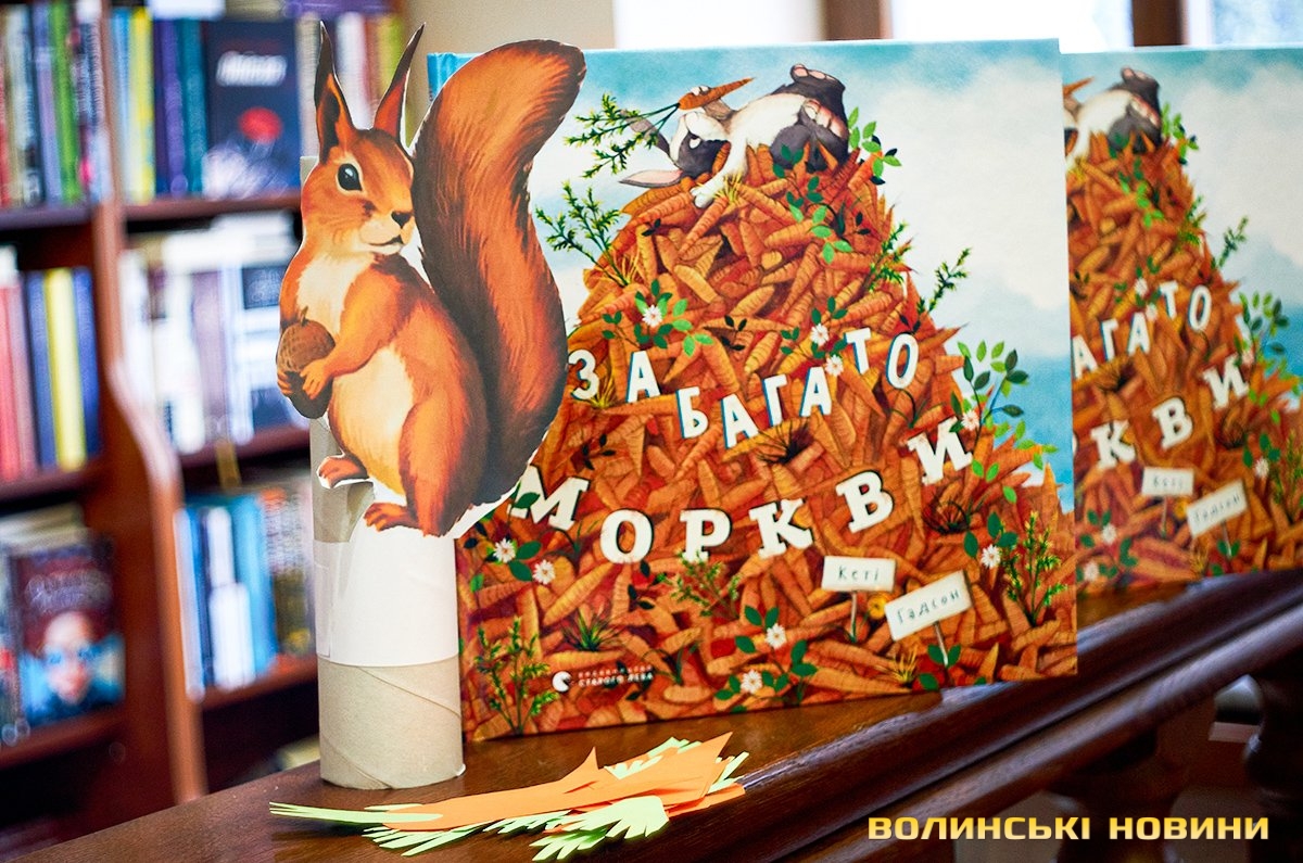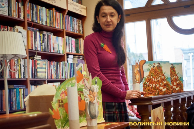 Дорослі та батьки добре знають — субота у луцькій книгарні «Є», зазвичай, проходить весело та з користю. Адже саме цього дня художниця та майстриня Ірина Сардак-Бондарук ділиться секретами створення різноманітних цікавинок із буденних речей.Сьогодні ж, захід відбувся у трохи незвичному форматі. Якщо на минулих заняттях діти вчилися створювати милих янголят та кумедних гномів, то нині наймолодші гості заходу подивилися цікаву виставу та отримали сувенір — морквину-закладинку.Ірина Сардак-Бондарук розповідає, що про такий формат «дитячої суботи» її неодноразово просили батьки зовсім юних дітей — віком 3-7 років. Адже для них традиційні майстер-класи не зовсім підходять. То ж і вирішила майстриня вигадати щось цікаве і, водночас, корисне.В основі історії — книга Кеті Гадсон «Забагато моркви». У коротенькому оповіданні йдеться про вуханя-колекціонера, який через надмірну любов до моркви так захаращив оселю, що не зміг до неї потрапити. Тому й довелося жадібному кролику просити друзів: черепаху, бобра та пташину про допомогу. Цим і цікава книга (як і більшість дитячих історій від «Видавництва Старого Лева») — проста історія має серйозну мораль та чудово проілюстрована. Батькам легко переповісти її наймолодшим читачам, а дітям — цікаво порозглядати малюнки.Перед виставою дітки, разом із батьками, мали змогу розмалювати «театральний реквізит» — паперові морквинки. А після виступу Ірина Сардак-Бондарук провела майстер-клас для батьків. Усі побачили, як із картонної коробки, кольорового паперу, шматків тканини, старого кошика та відрізку поліетилену можна створити власний театр.Майстриня розповідає, що створення реквізиту зайняло лише близько 2-х годин. Натомість, діти і дорослі не лише отримали задоволення від вистави, але й вкотре переконалися у правдивості твердження про те, що головний інструмент майстра — це фантазія.Фото Олександра Дурманенка.