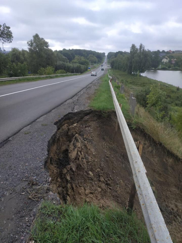 Внаслідок інтенсивної зливи на 146-му кілометрі автодороги Н-22 Устилуг-Луцьк-Рівне в районі села Бронники Рівненського району утворились розмиви узбіччя та земляного полотна.