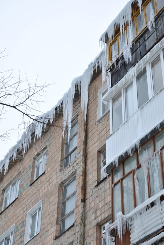 Наразі, коли вдень тримається плюсова температура, гігантські бурульки обламуються під власною вагою. Глиби льоду, ламаючи козирки під\'їздів, падають і від удару об землю розлітаються як шрапнель.