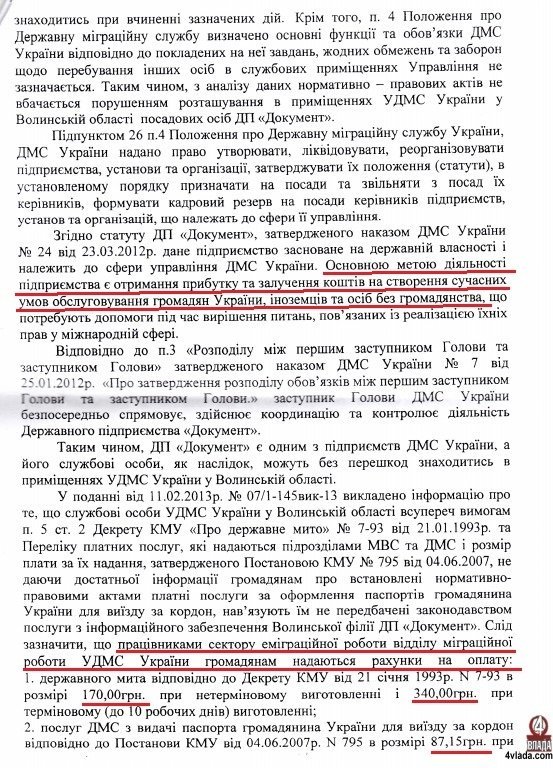 З огляду на позов і те, що нещодавно українець в Дніпропетровському апеляційному суді відстояв право на отримання закордонного паспорту за 170 гривень, портал Четверта влада звернувся до першого заступника начальника Управління ДМС у Волинській області Олексія Чернишева.