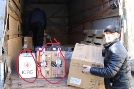 Міжнародний Комітет Червоного Хреста забезпечує окупантів в тимчасово окупованому смт Мангуш Маріупольського району гуманітарною допомогою, зокрема технікою.
