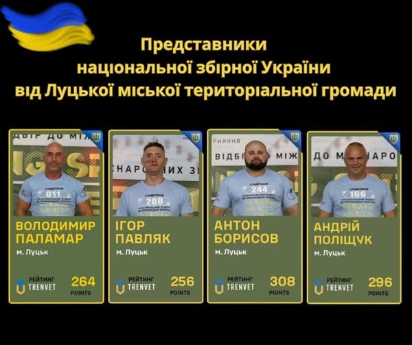 Луцьк на міжнародних змаганнях у складі національної збірної команди України представлятимуть спортсмени:
