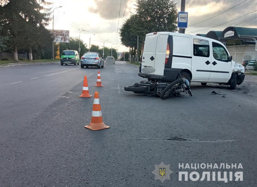 Цього ж дня у Луцьку по вулиці Ковельській зіткнулися автомобіль Fiat Doblo та мотоцикл Forte. Внаслідок зіткнення транспортних засобів травмувався 17-річний водій мотоцикла, його госпіталізували до лікарні.
