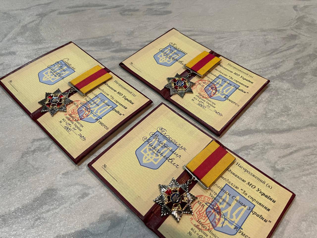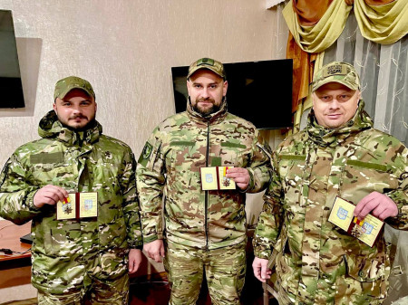 Медалі «За сприяння Збройним Силам України» сьогодні, в тисячний день від часу повномасштабного вторгнення, отримали Володимир Прокопчук, Юрій Смаль, Сергій Карпець, Володимир Сільчук.