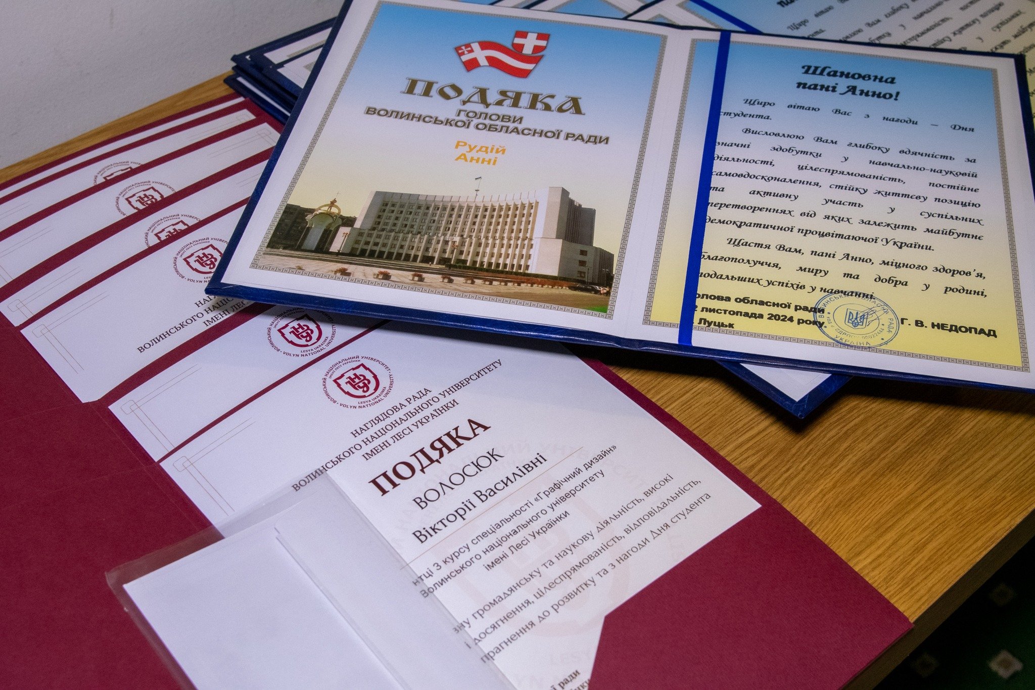 Насамкінець члени Наглядової ради виконали заохочувальну та мотиваційну місію з відзначення лідерів студентського самоврядування університету спеціальними стипендіями Наглядової ради ВНУ імені Лесі Українки, а також подяками голови обласної ради.
