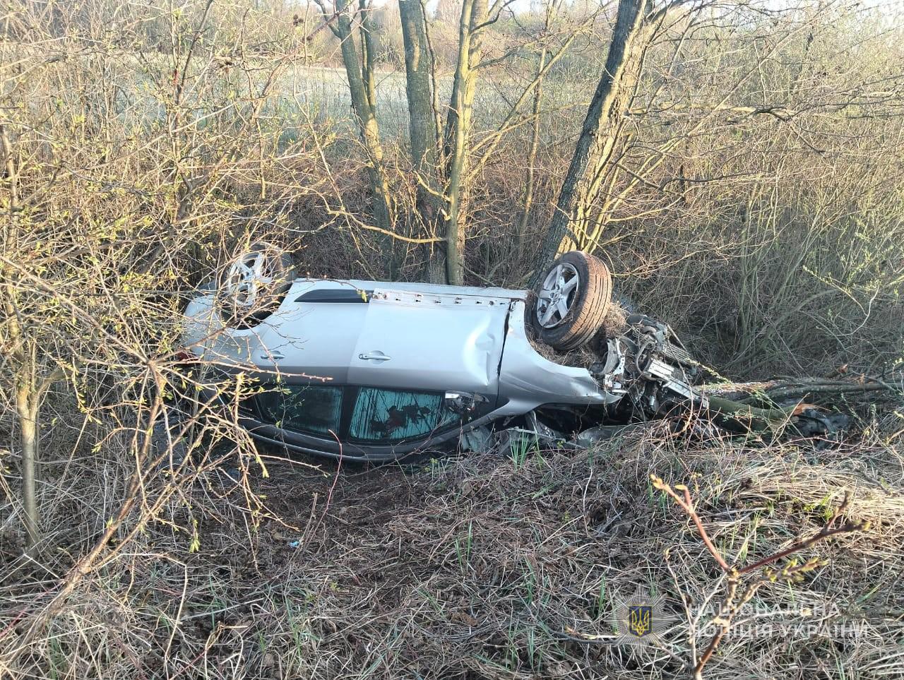 У пресслужбі поліції зазначили, що водій автомобіля Renault Megane не впорався з керуванням, з’їхав у кювет і зіткнувся з деревом. Внаслідок удару транспортний засіб перекинувся.
