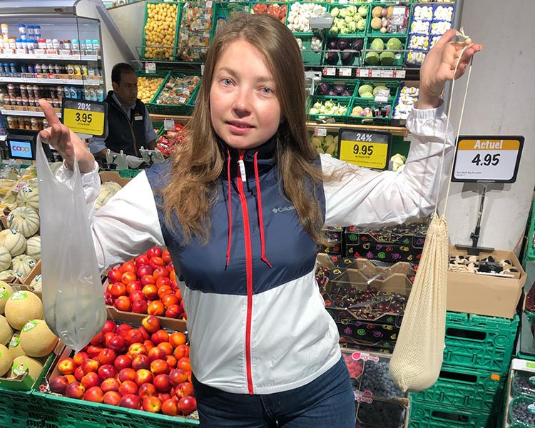 Попереднє планування походу в супермаркетЩе з дому я беру з собою мішечки довготривалого використання (три мішечки – 5 франків – 150 грн) та пакет з матеріалу чи рюкзак, бо у магазині можуть запропонувати паперові/пластикові або кульки, які згодом розкладаються.