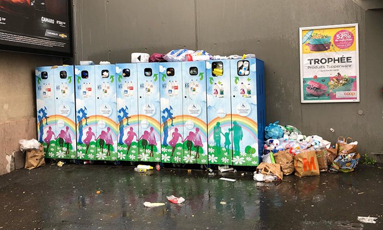 Звичайно всі ми не без гріха і бувають довгі вихідні, коли не встигають спорожнювати контейнери як ось ці приміром.У Швейцарії існує проблема вихідних