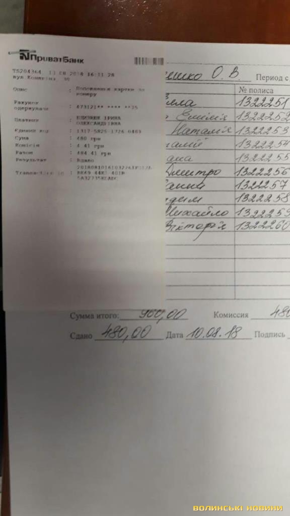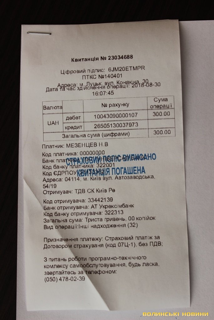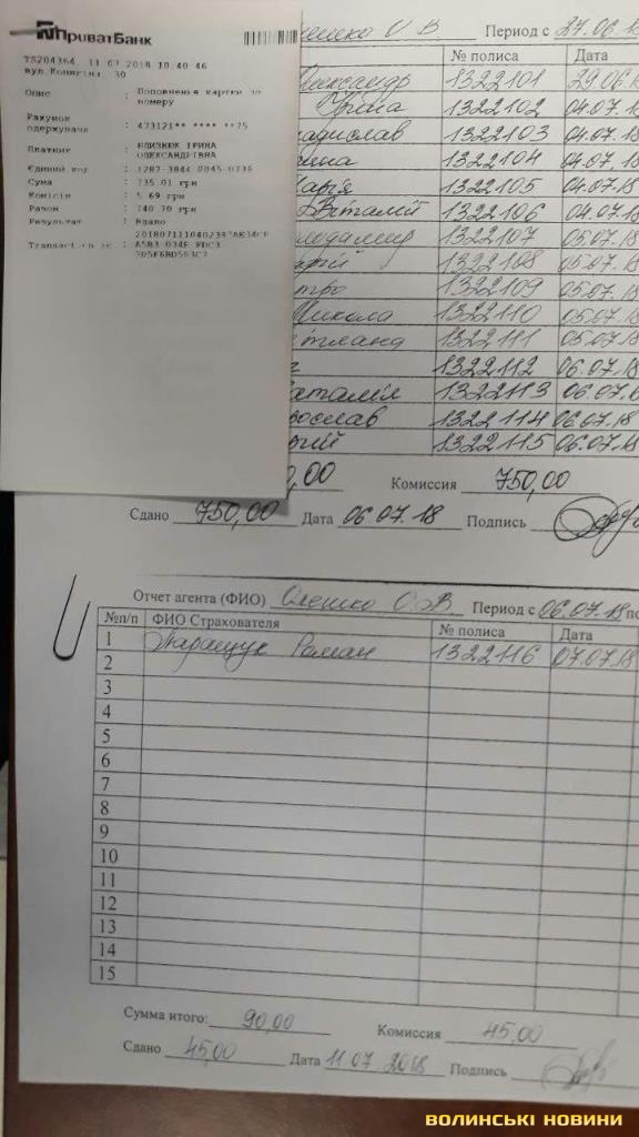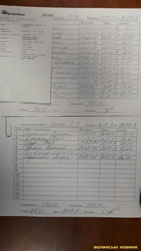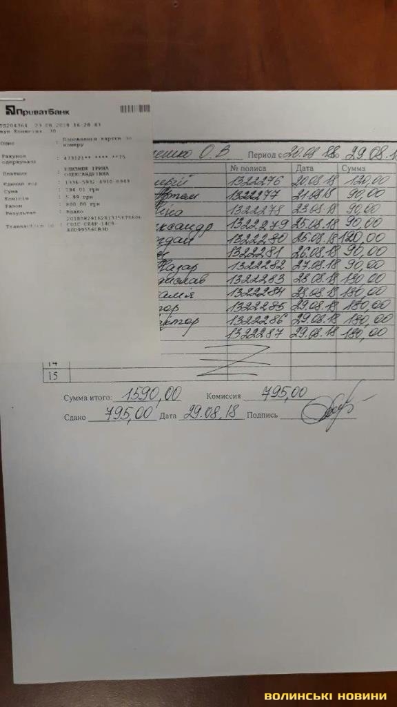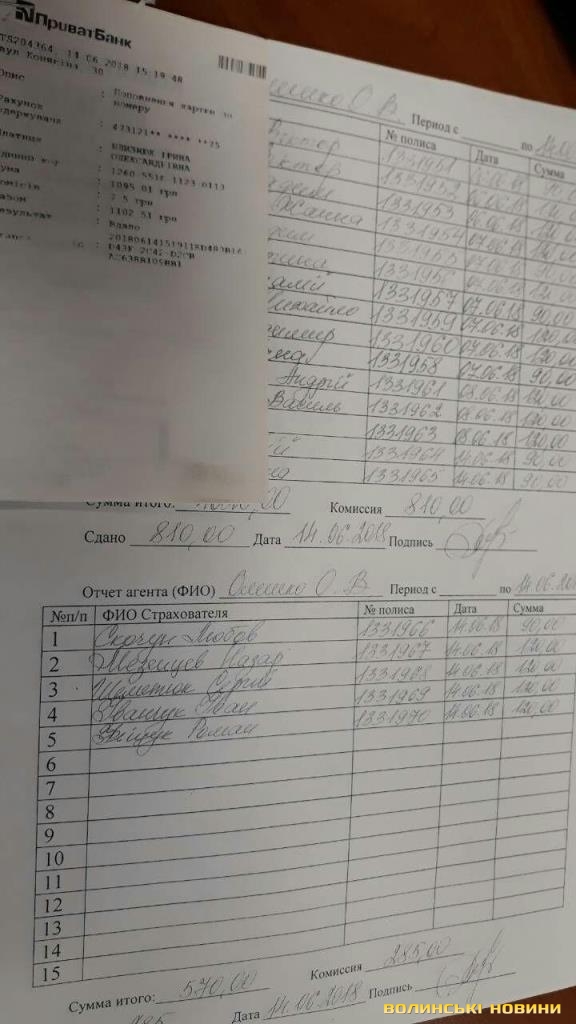 Звіти щодо сплати за поліси луцьким підприємцем.
