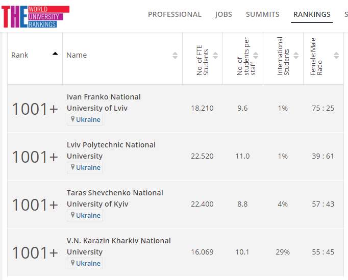 Так, у престижний рейтинг внесли два виші зі Львова (ЛНУ ім. Івана Франка, НУ “Львівська політехніка), один київський (КНУ ім. Т. Шевченка) та один із Харкова (ХНУ ім. Каразіна).