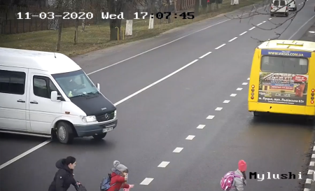 Не захищаю водія , але жінка ще й з дітьми просто з-за маршрутки вискакує на перехід навіть не впевнившись в безпеці !!!