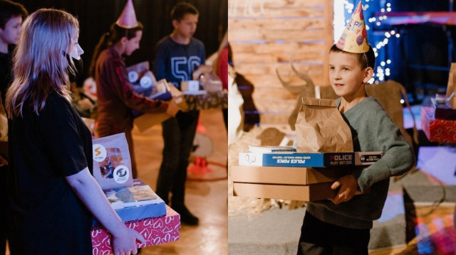 Для кожної дитини у подарункову коробку поклали канцтовари, солодощі, одяг, засоби гігієни, іграшки, піжаму та Біблію.