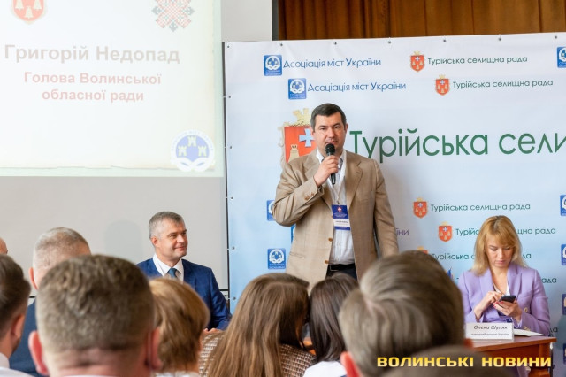 «Григорій Недопад тут говорив про досвід і не згадав про ще один – досвід створення комунального підприємства «Волиньприродресурс», що було зроблено ще при Ігореві Петровичу Палиці. А в період головування Ірини Вахович, яка у цій залі, почалися перші аукціони з продажу видобутого бурштину. Зараз це надходження до бюджету. Знаю, що чимало колег депутатів, голів облрад цікавляться, як нам вдалося його створити, й хочуть перейняти цей досвід, бо і в них є природні багатства в регіонах, як у нас торф чи бурштин», - додав він.Про складність з фінансуванням говорив і голова Турійської територіальної громади Олексій Безсмертний. Особливо це відчутно, каже, в галузі культури. Після минулорічних місцевих виборів громада об’єднала 52 населених пункти. На території громади – 29 клубів і 15 бібліотек (до слова, захід відбувався в одному з таких будинків культури, де в тому ж приміщенні діє бібліотека), музична школа, Будинок дитячої творчості. На балансі громади опинився і районний будинок культури (після ліквідації району).«На жаль, це наш головний біль – культура. Як вчинити? У нас вісім колективів мають звання «народного». Якщо розігнати творчих людей, то на будь-які заходи доведеться чекати приїзду Волинського хору чи ще якогось колективу з Луцька. Але ми не готові прийняти радикальне рішення», - каже він.