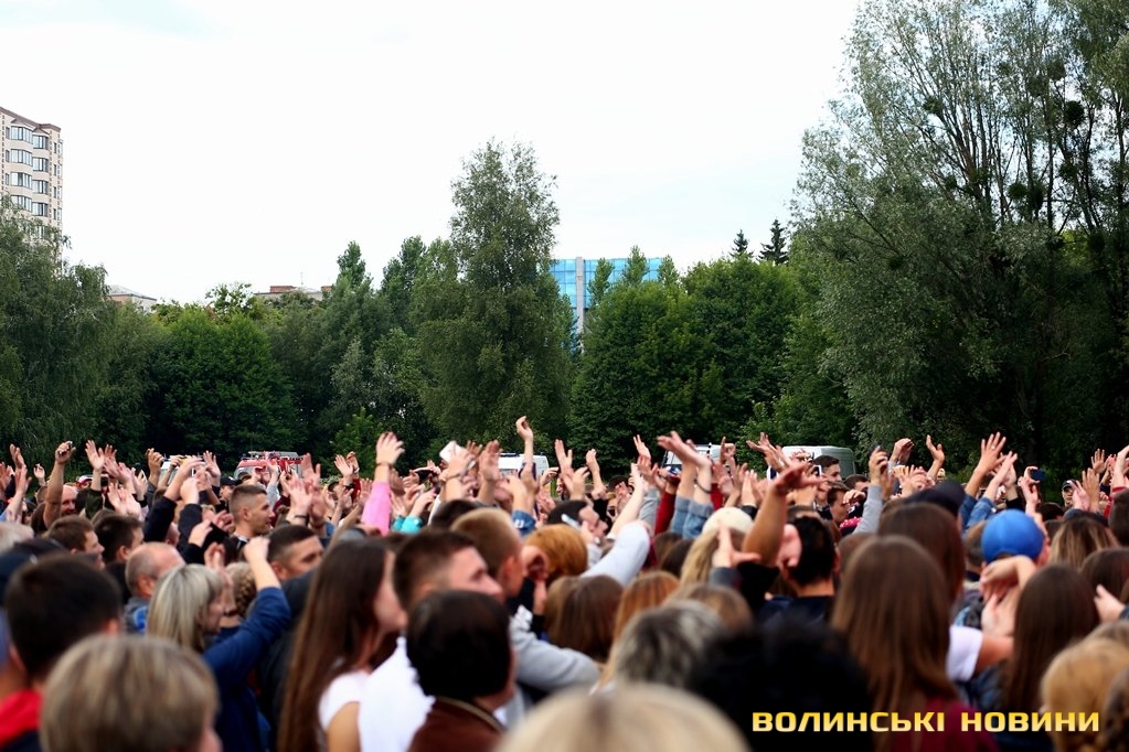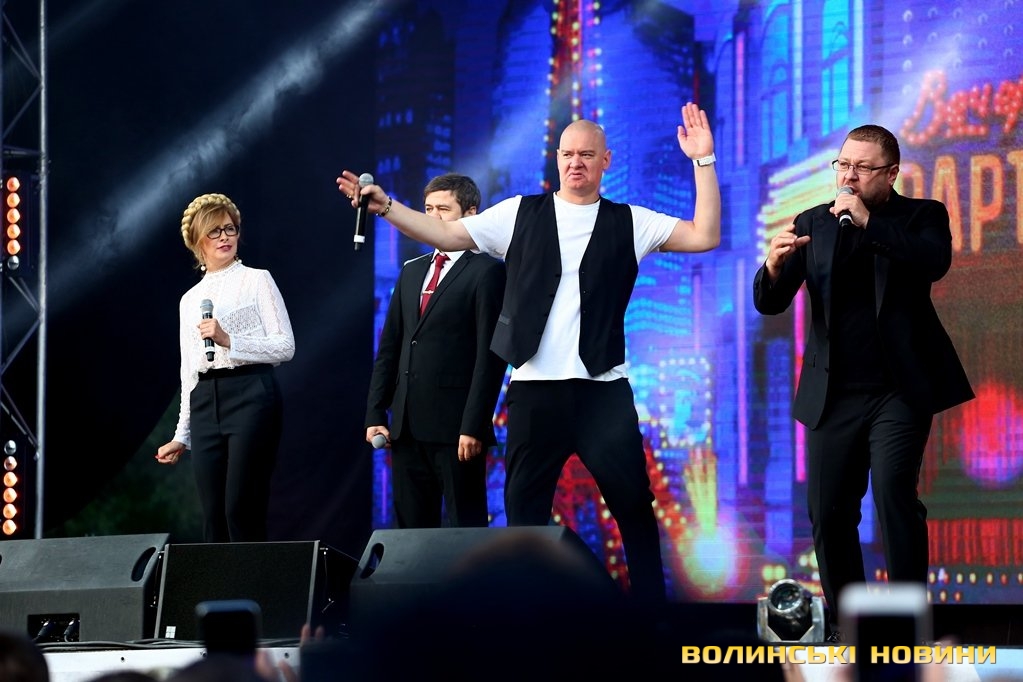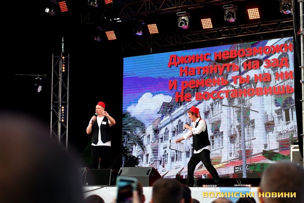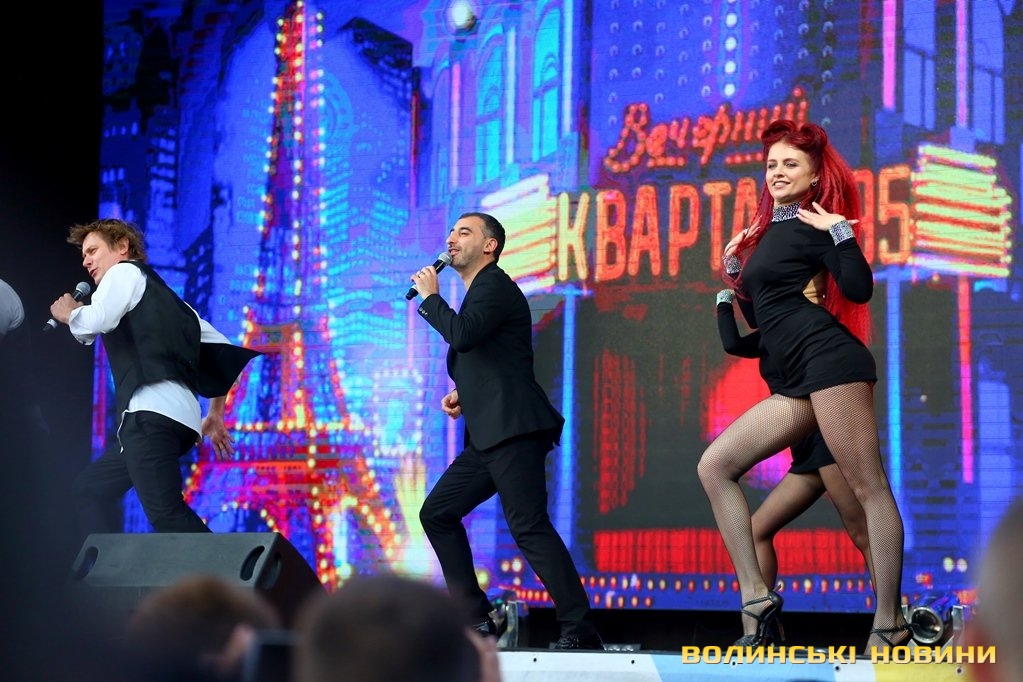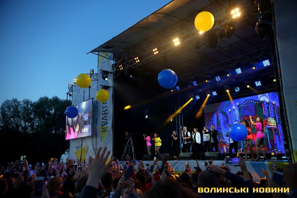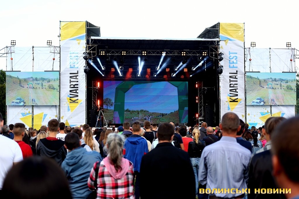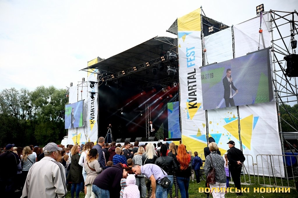 Декілька тижнів тому на електронних сторінках місцевих ЗМІ стала з’являтися інформація, що у центральному парку Луцька виступить «Квартал-95», а вхід буде абсолютно безкоштовним, тож вже сьогодні територію іподрому заполонили декілька тисяч людей, очікуючи на виступ своїх кумирів.Втім, перед виходом на сцену кварталівців луцьку публіку розігрів місцевий репер AqUA, також ведучі дійства відомі з проекту «Ліга Сміху» «Збірна Кременчука» організували серед лучан караоке.Не оминули КvartalFest і луцькі лігосмішники – «Замок Любарта». Хлопці на початку виступу одразу взяли хороший темп, змушуючи сміятись лучан над жартами про сморід, футбольний клуб «Волинь» та різноманітними життєвими ситуаціями.А вже далі на сцену вийшли Петро Порошенко, Юлія Тимошенко, Олег Ляшко, Андрій Парубій та Віталій Кличко… але усі ці образи політиків грали актори «Кварталу-95»: Юрій Крапов, Олена Кравець, Степан Казанін, Олександр Пікалов та Євген Кошовий відповідно. Всі вони почали у комічній формі сперечатися, яким бачать свої передвиборчі ролики.Після цього лучани почули традиційний спіч перед основним концертом вже від Євгена Кошового. Щоправда і тут не обійшлося без Зеленського, адже він постійно переривав промову Євгена Кошового дзвінками вже у статусі президента. Насамкінець президент випросив востанній раз з екрану сказати слова, які раніше належали йому: «Добро пожаловать в наш Вечерний квартал».Вже традиційно після «Каждый вечер-вечер наступает вдруг» на сцену вийшли Євген Кошовий та Степан Казанін, які провели рубрику «Політичне Діскавері», жартівливо коментуючи дії тварин на відео.Але чи не найбільше лучани очікували «Сербського телебачення», де актор Євген Кошовий у ролі сербського ведучого Дрінко Дрінчіча зі смішним акцентом ставить питання зіркам. Цього разу в студії «Сербського телебачення» опинилися дует «On I Ona», які змушені були відповідати на запитання, чи «не хочуть вони стати мандатованими балаболами або верховнорадними фуфломьотами».Відстрілявшись на гумористичному випробуванні, «On I Ona» подарували лучанам свій запальний хіт «Точка G».Тим часом, кварталівці після виступу співаків продовжили смішити лучан, найбільше лучани сміялися над пародією програми «Здорово жить», в якій брали участь Олена Кравець у ролі Олени Малишевої та Олександр Пікалов і Євген Кошовий у ролі Андрія Парубія та Віталія Кличка відповідно. Традиційно Андрія Парубія висміювали за його мову, а Віталія Кличка за невдалі вислови.Насамкінець кварталівці традиційно заспівали пісню усім акторським складом. Чи були задоволені виступом лучани? Однозначно були, про що свідчать численні оплески та сміх впродовж всього концерту. Тож можна резюмувати, що «Кварталу-95» без Зеленського бути.