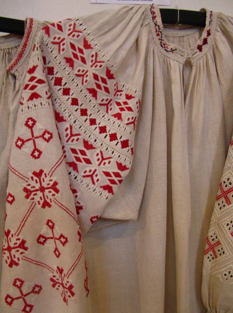 «Цей старовинний одяг вирізняється тим, що більшість вишиванок у цьому краї викроювалися ножем. Коміри у таких вбраннях були викладними. Вони прищіплювалися запонками з олова зі скельцем або жичками (вовняними смужками червоного або зеленого кольору, – ред.)», – йдеться у повідомленні.