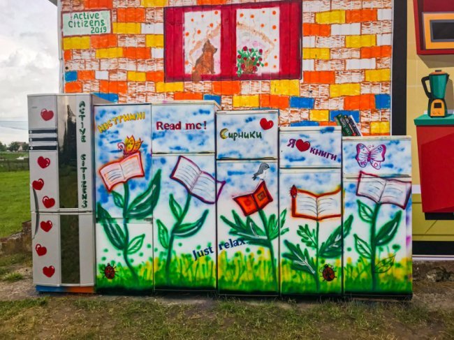У селі Сирники Луцького району ініціативні мешканці облаштували бібліотеку просто неба. Замість книжкових полиць тут холодильники, а почитати можна просто в ретро автомобілі.