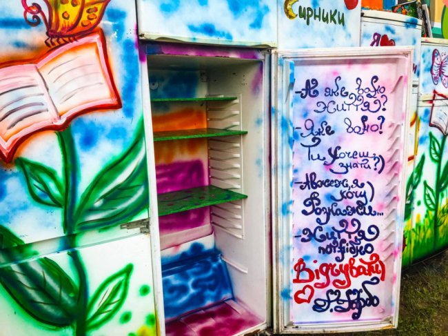Відтак книжкові полички авторки проєкту облаштували в холодильниках, а почитати пропонують у ретро автомобілі, який нещодавно знайшли на металобрухті.