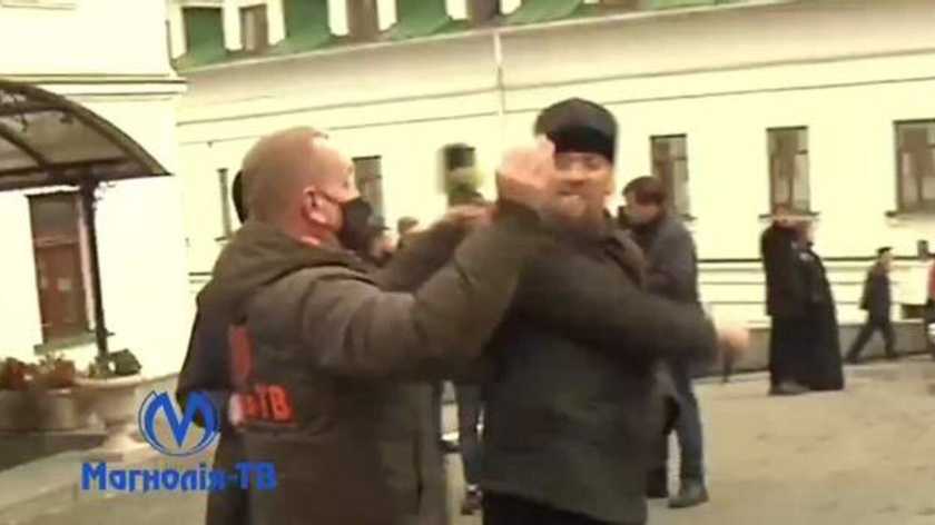 Один із чоловіків у рясі, очевидно чернець, відібрав у журналіста телефон. Коли журналіст попросив віддати його майно, намісник Лаври, що стояв поруч, митрополит Павло (Лебідь) наказав своєму підлеглому «нічого не віддавати».