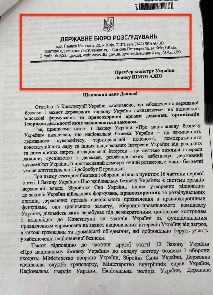 «Прошу доповнити перелік суб’єктів, яким може виплачуватись додаткова винагорода згідно із постановою Кабінету міністрів України від 28.02.2022 номер 168 «Питання деяких виплат військовослужбовцям, особам рядового і начальницького складу, поліцейським та їх сім’ям під час дії воєнного стану», особами рядового і начальницького складу Державного бюро розслідувань», – вказано у листі.