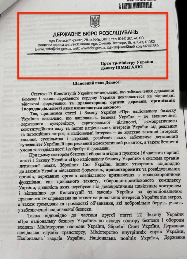 Водночас у своєму зверненні до прем’єр-міністра директор ДБР зазначає, що «Державне бюро розслідувань бере участь у відсічі військовій агресії Російської Федерації проти України, а також здійснює інші заходи із забезпечення національних інтересів та безпеки України».