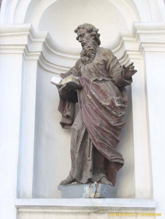Нещодавно мережами поширилися повідомлення про те, що у скульптури Святого Павла із луцького кафедрального костелу Святих Апостолів Петра і Павла зник меч, який святий тримав у правій руці. Громадськість висловлювала різні думки з цього приводу. Наприклад, що меча вкрали чи забрали невідомі особи на реставрацію. Дехто стверджував, що його відірвало під час бурі.