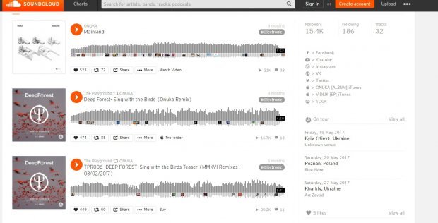 Теж один із найпопулярніших сервісів для розміщення та прослуховування музики. Сервіс побудований за принципом соцмережі. Кожна пісня має свою окрему адресу, тож ви можете ділитись нею в інших соцмережах.