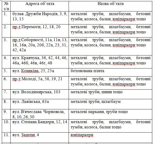 Де у Луцьку знесуть шлагбауми та інші перешкоди для проїзду. Адреси