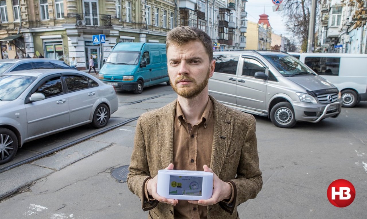 З громадським активістом Павлом Калюком НВ зустрічається на столичному Подолі. Від того, що дороги тут вузькі і брущаті, автомобілі тягнуться нескінченною газуючою вервечкою. «Так, вже 63. Це за норми 50», – зітхає Калюк, заклопотано поглядаючи на екран невеликого пристрою.