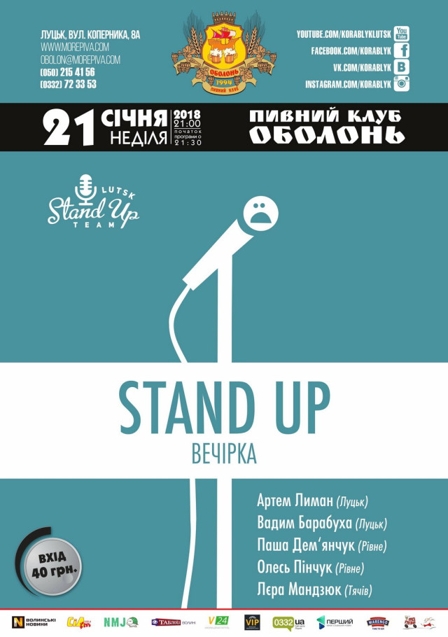 Вечірка STAND UP у «Кораблику» | 21 січня, неділя
