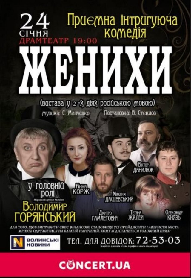 Комедія «Женихи» у Волинському академічному театрі імені Т. Г. Шевченка | 24 січня, середа