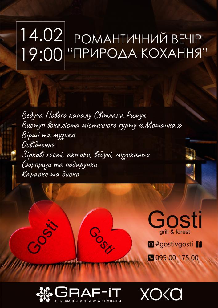 Романтичний вечір «Природа кохання зі Світланою Рижук» у ресторані «Gosti» | 14 лютого