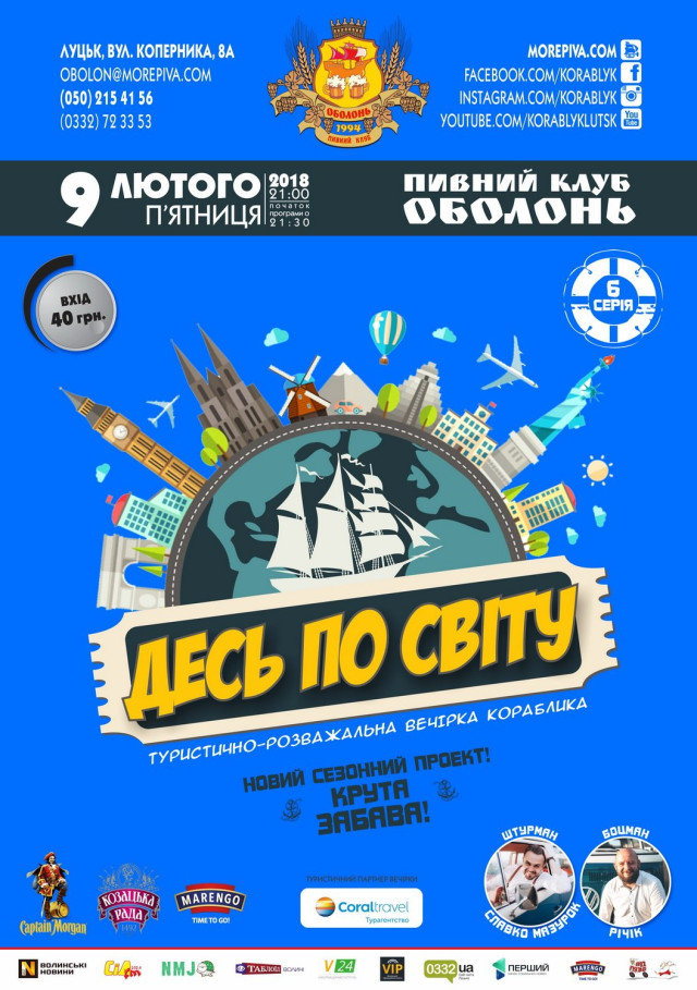 Туристично-розважальна вечірка «Десь по світу» у пивному клубі «Оболонь» | 9 лютого