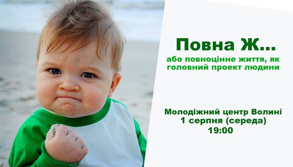 Презентація проекту UKRAЇNER в антикафе Innerspace | 27 липняТренінг по каністерапії від Анди Пекшени | 27 липня – 1 серпняКонцерт французького органіста П'єра Зеворта у Волинській обласній філармонії | 28 липняForce Cup CS:GO у Force Arena| 28 липняВосьмий гастрономічний фестиваль «Lutsk Food Fest» у Луцькому замку | 28–29 липняКіноперегляд просто неба від проекту «Lutsk night cinema» на стадіоні СНУ імені Лесі Українки| 29 липняЗахід у рамках соціально-інтелектуального проекту «Екскурсоводи у відпустці» в Центрі туристичної інформації та послуг | 29 липняПрезентація міжнародного проекту «Креативне Східне партнерство» в Молодіжному центрі Волині | 30 липняКонцерт LUX FM Party Tour на іподромі| 31 липняТренінг «Повна Ж, або Повноцінне життя як головний проект людини» в Молодіжному центрі Волині | 1 серпня