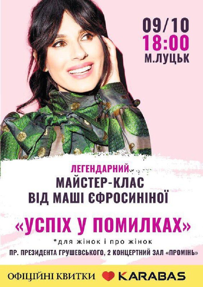 «СтудМіс Волині» у Палаці культури міста Луцька | 4 жовтняНарештi п'ятниця! Вiдривна дискотiвка в пивному клубі «Оболонь» | 4 жовтняПіаніст-композитор Андрій Куманський у клубі «Цитра» | 4 жовтняВистава «Обережно – жінки» у Волинському академічному театрі імені Тараса Шевченка | 4 жовтняІІ Міжнародний літературний фестиваль «Фронтера»| 4–6 жовтняРадiоХiти. Танцiв пивному клубі «Оболонь» | 5 жовтняЕротично-музичне дійство від Антіна Мухарського та антрополога Ореста Лютого в пабі Лучеsк | 5 жовтняMax Tavrichesky. Back To Zitter у клубі «Цитра» | 5 жовтняВистава «Шельменко-денщик» у Волинському академічному театрі імені Тараса Шевченка | 5 жовтняЖіночий фестиваль «ЩасливаЯ» у Молодіжному центрі Волині | 5 жовтняТест-драйв Nissan у Adrenalin-City | 5 жовтня«Польський день» у рамках фестивалю «Стравінський та Україна» у Волинській обласній філармонії | 6 жовтняВистава «Як Горобець розуму шукав» у Волинському академічному обласному театрі ляльок | 6 жовтняВистава «Жила-була Сироїжка» у Волинському академічному театрі імені Тараса Шевченка | 6 жовтняРОКотека в пивному клубі «Оболонь» | 6 жовтняВистава «Присмерк» у Волинському академічному театрі імені Тараса Шевченка | 6 жовтняТриб'ют «Один в Каное» в клубі «Цитра» | 8 жовтняВсеукраїнський конкурс професійних читців у Волинському академічному обласному театрі ляльок | 7–9 жовтняМаркетинг: очікування vs реальність у BAR 11 | 8 жовтняМаша Єфросиніна «Успіху помилках» у РЦ «Промінь» | 9 жовтняВідкриття виставки «Kultur-Natur» у Музеї сучасного українського мистецтва Корскаків | 10 жовтня
