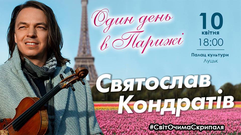 Фан-зустріч із акторами серіалу «Школа» в РЦ «Промінь» | 4 квітняМоноспектакль «Про що мовчать чоловіки, або Дикун FOREVER» у Палаці культури міста Луцька | 4 квітняПерша україномовна стендап-комедія в Палаці культури міста Луцька | 4 квітняМузично-розважальна забава «Меломан» у пивному клубі «Оболонь» | 5 квітняВистава «Ведмідь. Пропозиція» у Волинському обласному академічному музично-драматичному театрі імені Тараса Шевченка | 5 квітняБлагодійний бал Impreza Lubarta в Музеї сучасного українського мистецтва Корсаків | 5 квітняЛекція «Історія римо-католицької Церкви на Волині» в Центрі туристичної інформації та послуг | 5 квітняКонцерт «Смичком по клавішах» у Палаці культури міста Луцька | 5 квітняВиставка робіт Вікторії Романчук у РЦ «Промінь» | 5 квітняDILEMMA у клубі ХХІ століття | 6 квітняТренінг-кастинг театру-студії «Гармидер» у Луцькому районному будинку культури| 6 квітняСмачна дискотівка у пивному клубі «Оболонь» | 6 квітняВистава «Любов до скону» у Волинському обласному академічному музично-драматичному театрі імені Тараса Шевченка | 6 квітняThe Blast у пивному клубі «Майдан» | 6 квітняГерметичне коло Карла Звіринського: лекція у Музеї сучасного українського мистецтва Корсаків | 6 квітняВистава «Кордон» від театру-студії «Гармидер» у Луцькому районному будинку культури| 7 квітняАнна Сліпчук та Сергій Гончаренко. Кавери на відомі хіти в пивному клубі «Оболонь» | 7 квітняВистава «Дуже проста історія» у Волинському обласному академічному музично-драматичному театрі імені Тараса Шевченка | 7 квітняКонцерт симфонічного оркестру Lords of the Sound у Волинському обласному академічному музично-драматичному театрі імені Тараса Шевченка | 8 квітняПрезентація книжки Михайла Гереця «У світ широкий з Україною в серці» у Музеї історії Луцького братства | 9 квітняВівтоРОК з Анатолієм Вітинським у пивному клубі «Майдан» | 9 квітняРок-опера «Біла ворона» у Волинському обласному академічному музично-драматичному театрі імені Тараса Шевченка | 10 квітняМагія двох гітар. Акустичний вечір Юрія та Андрія Поліщуків у пивному клубі «Майдан» | 10 квітняКонцерт «Один день в Парижі» скрипаля-віртуоза Святослава Кондратіва в Палаці культури міста Луцька | 10 квітняВистава «Маруся Чурай» у Волинському обласному академічному музично-драматичному театрі імені Тараса Шевченка | 11 квітняПрезентація книжки Поліни Кулакової «Дівчина, яку ми вбили» у книгарні «Є» | 11 квітняIn ROCK: BEST ROCK & BLUES HITS у пивному клубі «Майдан» | 11 квітня