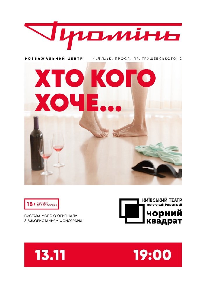 Вистава «Не шукайте щастя, бо я його украв» у Волинському академічному театрі імені Тараса Шевченка | 5 листопада«Фіолет» з акустикою та віршами у ГаРмИдЕр ангар-stage | 6 листопадаВистава «Фрекен Жюлі» у Волинському академічному театрі імені Тараса Шевченка | 6 листопадаТанцювальний майстер-клас від ГО «Життя потребує руху» | 6 листопадаВистава «Мати» від театру «Гармидер» у ГаРмИдЕр ангар-stage | 7 листопадаНічний кіноперегляд «All night» у Молодіжному центрі Волині | 7 листопадаВистава «Пан Коцький» у Волинському академічному обласному театрі ляльок | 7 листопадаWOW:ранок Бізнес змін: як не боятися та куди рухатися вперед у «Сулі Гулі» (проспект Волі, 8а) | 7 листопадаБудь в формі: функціональне групове тренування з Антоном Яловиком у СК «Олімпія» | 8 листопадаВистава «Золотоволоска» у Волинському академічному театрі імені Тараса Шевченка | 8 листопадаМайстер-класи від музейної майстерні «Пташка» у Волинському краєзнавчому музеї | 8 листопадаВистава «Енеїда» у Волинському академічному театрі імені Тараса Шевченка | 8 листопадаБал всіх святих у кафедральному костелі Святих Апостолів Петра і Павла | 8 листопадаВистава «Жила-була Сироїжка» у Волинському академічному театрі імені Тараса Шевченка | 8 листопадаПісочна анімація: уроки для дітей у художній студії «Барва» | 11 листопадаВистава «Замовляю любов» у Волинському академічному театрі імені Тараса Шевченка | 12 листопадаВистава театру «Чорний квадрат» «Хто кого хоче?..» у РЦ «Промінь» | 13 листопадаОлег Каданов у ГаРмИдЕр ангар-stage | 13 листопада