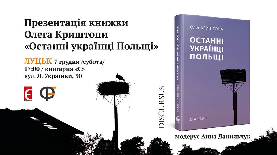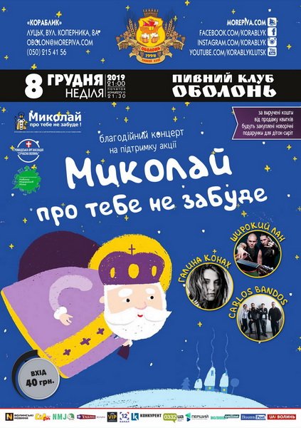 Валерій Жидков #Гуднайтшоу у РЦ «Промінь» | 6 грудняЛекція Тетяни Яцечко-Блаженко «Луцьк і дев'яності» в книгарні «Є» | 6 грудняМайстер-клас композитора Сергія Радзецького в клубі «Цитра» | 6 грудняВистава «Ведмідь. Пропозиція» у Волинському академічному обласному театрі імені Тараса Шевченка | 6 грудняНарештi п'ятниця! Вiдривна дискотiвка в пивному клубі «Оболонь» | 6 грудняТренінг «Як видати мільйон книг і не прогоріти в епоху YouTube i Netflix?» у РЦ «Промінь» | 6 грудняОлег Криштопа «Останні українці Польщі» в книгарні «Є» | 7 грудняВистава «Кордон» театру-студії «Гармидер» у «ГаРмИдЕр ангар-stage» (Залізнична, 9) | 7 грудняКавьор-паті. Гурт Index у Pub Oldskull | 7 грудняЗабава «ГУБАМИ ЛЯП ШОУ». Ведучий – Славко Мазурок у пивному клубі «Оболонь» | 7 грудняОлексій Лазарєв & Руслана Моклиця у клубі «Цитра» | 7 грудняТренінг «Як ставити продуктивні цілі 2020» у PRO Business HUB | 8 грудняВистава «Століття якова: Перше кохання» у Волинському академічному обласному театрі імені Тараса Шевченка | 8 грудняМакс Лопахтін сольний стендап «Відповідальний молодець» у клубі «Цитра» | 8 грудняБлагодiйний концерт-солянка «МИКОЛАЙ ПРО ТЕБЕ НЕ ЗАБУДЕ»: ШИРОКИЙ ЛАН, ГАЛИНА КОНАХ, CARLOS BANDOS у пивному клубі «Оболонь» | 8 грудняВистава «Гусеня» у Волинському академічному обласному театрі імені Тараса Шевченка | 8 грудняКонцерт гурту «Аколада» в Палаці культури міста Луцька | 8 грудняMOTANKA у Арт-кафе «Стоп-Кадр» | 8 грудняВистава «Пітер Пен» у Волинському академічному обласному театрі імені Тараса Шевченка | 8 грудняСерёга A.K.A. Полиграф Шарикоff у Волинському академічному обласному театрі імені Тараса Шевченка | 9 грудняОлександр Котиc «Колажі як елемент медіа дизайну» у Молодіжному центрі Волині | 9 грудняДизель шоу у Волинському академічному обласному театрі імені Тараса Шевченка | 10 грудняВистава «Обережно – жінки» у Волинському академічному обласному театрі імені Тараса Шевченка | 11 грудняПоль Манондіз (творча зустріч) у Волинському академічному обласному театрі імені Тараса Шевченка | 11 грудняGhost Cities у клубі «Цитра» | 12 грудняВистава «Повернення в Соренто» у Волинському академічному обласному театрі імені Тараса Шевченка | 12 грудняFuckup Nights Lutsk vol.II у Passage Interdit | 12 грудняЛекція Олександра Котиса «Цукерні і кав'ярні міжвоєнного Луцька» у книгарні «Є» | 12 грудня