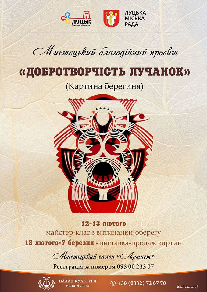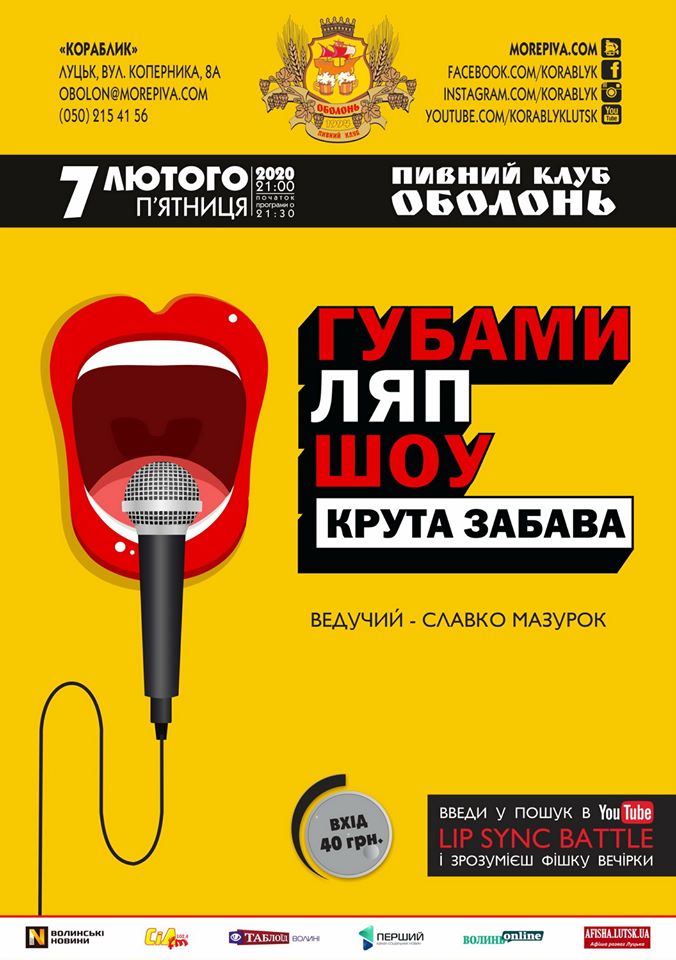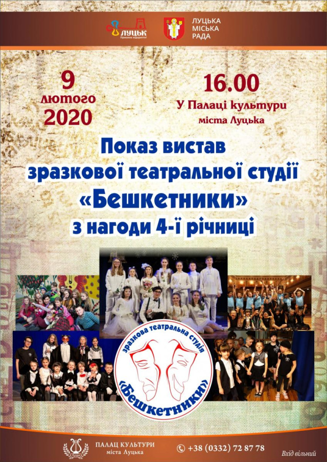 Концерт Академічного камерного оркестру «Кантабіле» Волинської обласної філармонії у Палаці культури міста Луцька | 6 лютогоВистава «Обережно – жінки» у Волинському академічному обласному музично-драматичному театрі імені Тараса Шевченка | 7 лютого Забава «Губами ляп-шоу» в пивному клубі «Оболонь» | 7 лютого WOW:ранок «Як навчитися продавати у світі, де продає кожен другий?» у PRO Business HUB | 7 лютого Вистава «Енеїда» у Волинському академічному обласному музично-драматичному театрі імені Тараса Шевченка | 8 лютого Смачна дискотівка в пивному клубі «Оболонь» | 8 лютого 8 технік сторітелінгу для соціальних мереж у PRO Business HUB | 8 лютого Показ вистав зразкової аматорської театральної студії «Бешкетники» в Палаці культури міста Луцька | 9 лютогоВистава «Лис Микита» у Волинському академічному обласному музично-драматичному театрі імені Тараса Шевченка | 9 лютого РОКотека в пивному клубі «Оболонь» | 9 лютого Вистава «Дуже проста історія» у Волинському академічному обласному музично-драматичному театрі імені Тараса Шевченка | 9 лютого «Веселий маскарад» у Волинському академічному обласному театрі ляльок | 9 лютого Мистецький благодійний проєкт «Добротворчість лучанок» у Палаці культури міста Луцька | 12–13 лютогоLords of the Sound «Love Story» у РЦ «Промінь» | 13 лютогоВистава «Замовляю любов» у Волинському академічному обласному музично-драматичному театрі імені Тараса Шевченка | 13 лютого