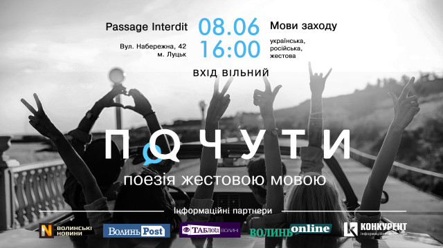Концерт Олега Винника на «Іподромі» (Центральний парк культури і відпочинку імені Лесі Українки) | 7 червняСмачна дискотівка в пивному клубі «Оболонь» | 7 червняФан-тур у Львів Україна – Сербія | 7 червняВечір поезії жестовою мовою у Passage Interdit | 8 червня«Жіночий квартал» у РЦ «Промінь» | 8 червняПавло Коробчук «Ключові клапани» у книгарні «Є» | 8 червняДоблесть віків. SOFT у Луцькому замку | 8 червняКлубний концерт Sonya Kay в Meat&Green | 8 червняРадіоХіти. Танці в пивному клубі «Оболонь» | 8 червняВистава «Обережно – жінки» у Волинському академічному театрі імені Тараса Шевченка | 8 червняВолонтерський день КП «Ласка»| 8 червняКонцерт гурту Recordie у пивному клубі «Майдан» | 8 червняВистава від театру-студії «Гармидер» «Кульбабове вино» у Палаці культури міста Луцька | 9 червняГурт «ЯRA» в пивному клубі «Оболонь» | 9 червня«O'Jazz'DOit»: вечірка з піаністом Олексієм Карпенком у клубі «Цитра» | 9 червняВистава «Солом’яний бичок» у Волинському академічному обласному театрі ляльок. Закриття 43-го театрального сезону | 9 червняМайстер-клас від Ольги Фреймут «Ревізія життя» у РЦ «Промінь» | 11 червняСергій Михалок і группа «ЛЯПИС 98» у РЦ «Промінь» | 13 червня