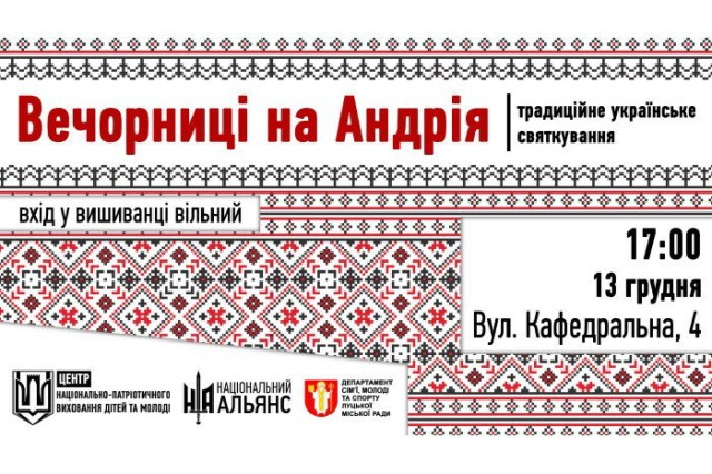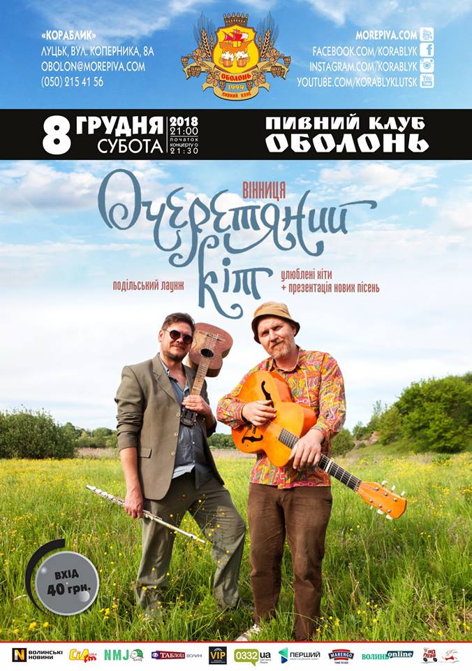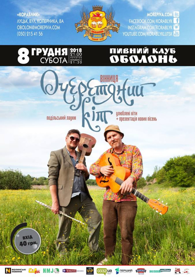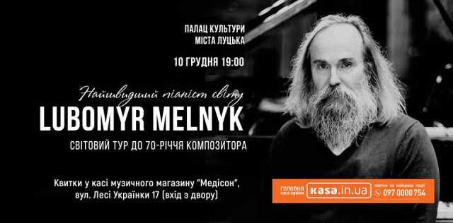 Відкриття виставки робіт Олени Звягінцевої «У боротьбі за незалежність» у РЦ «Промінь» | 6 грудня«Feel(m) Shorts» у Молодіжному центрі Волині | 7 грудняМузично-розважальна забава «МЕЛОМАН» у пивному клубі «Оболонь» | 7 грудняКонцерт гурту «Очеретяний кіт» у пивному клубі «Оболонь» | 8 грудняВистава «Голоси» у Волинському обласному академічному музично-драматичному театрі імені Тараса Шевченка | 8 грудняВистава «Смішарики. Велика подорож» у Волинському обласному академічному музично-драматичному театрі імені Тараса Шевченка | 8 грудняКонцерт триб’ют-гурту «Король и Шут» – «Царство Шута» в пабі «Лучеськ» | 8 грудня«Мольфа» з новою програмою «Чорно-біла війна» у барі «Майдан» | 8 грудняВистава «Кордон» театру «Гармидер» у Луцькому районному будинку культури | 9 грудняBeer Mix: дискотівка в пивному клубі «Оболонь» | 9 грудняВистава «Снігова королева» у Волинському обласному академічному музично-драматичному театрі імені Тараса Шевченка | 9 грудняЧемпіонат із євроґеймів від «Твоєї фішки» | 9 грудняВистава «Бременські музиканти» у Волинському обласному академічному музично-драматичному театрі імені Тараса Шевченка | 9 грудняКонцерт канадського композитора українського походження Любомира Мельника в Палаці культури міста Луцька | 10 грудняЛекція «Емпатійне спілкування. Як розуміти і чути один одного» в Молодіжному центрі Волині | 10 грудняПрезентація книжки Андрія Бондаря «Церебро» у книгарні «Є» | 11 грудняАндріївські вечорниці з «Давньою казкою» у Волинському обласному академічному музично-драматичному театрі імені Тараса Шевченка | 12 грудняАндріївські вечорниці в Центрі національно-патріотичного виховання дітей та молоді у місті Луцьк | 13 грудня