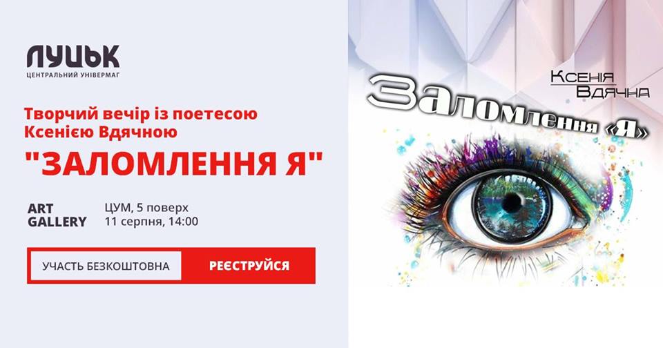 Презентація поетичної збірки Ксенії Вдячної «Заломлення Я» у ЦУМі | 11 серпня