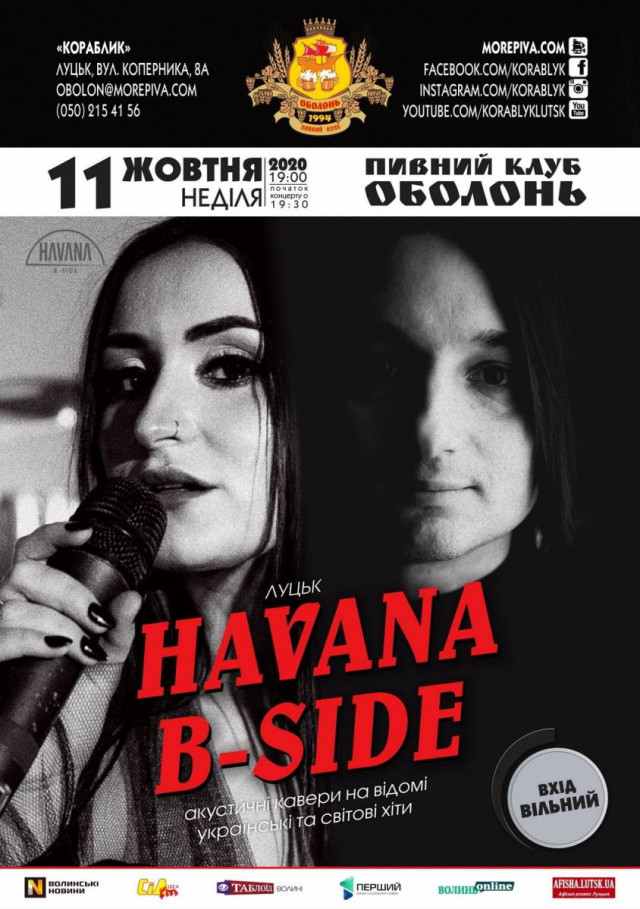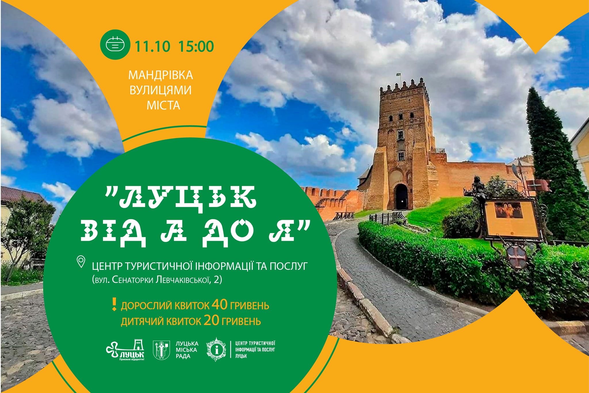Семінар «Інтернет-маркетинг для бізнесу» у Passage Interdit | 9 жовтняСмачна дискотівка в пивному клубі «Оболонь» | 9 жовтняМайстер-клас із живопису для дорослих «Вулицями величних міст» у художній студії «Барва» | 9 жовтняВистава «Фрекен Жюлі» у Волинському академічному театрі імені Тараса Шевченка | 9, 10 жовтняВсеукраїнська акція «Нагадай про кожного» на Театральному майдані | 10 жовтняBeer Mix: дискотівка на будь-який смак у пивному клубі «Оболонь» | 10 жовтняФорум-спектакль «Казки Ж» у Гармидер ангар-stage | 10 жовтняВистава «Дитина в дарунок» у Волинському академічному театрі імені Тараса Шевченка | 10 жовтняПрогулянка на катері «На одній хвилі» від будинку скульптора Миколи Голованя | 10 жовтняSalsa Club Lutsk Birthday Party в ресторані «Каша» | 10 жовтняГурт «Havana b-side» у пивному клубі «Оболонь» | 11 жовтняВистава «Лис Микита» у Волинському академічному театрі імені Тараса Шевченка | 11 жовтняМандрівка вулицями міста «Луцьк від А до Я» від Центру туристичної інформації та послуг | 11 жовтняВистава «Циганка Аза» у Волинському академічному театрі імені Тараса Шевченка | 11 жовтняКонцерт до Дня Покрови Пресвятої Богородиці, Дня захисника України, Дня українського козацтва, Дня народження УПА у Волинському академічному театрі імені Тараса Шевченка | 14 жовтняЗакриття мотосезону 2020 при вході в центральний парк | 14 жовтня