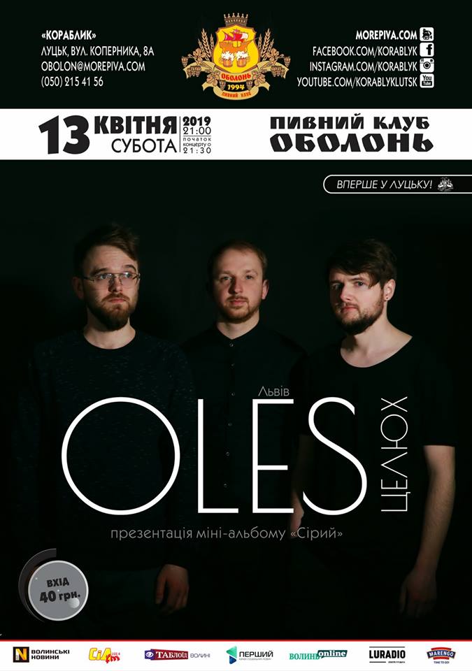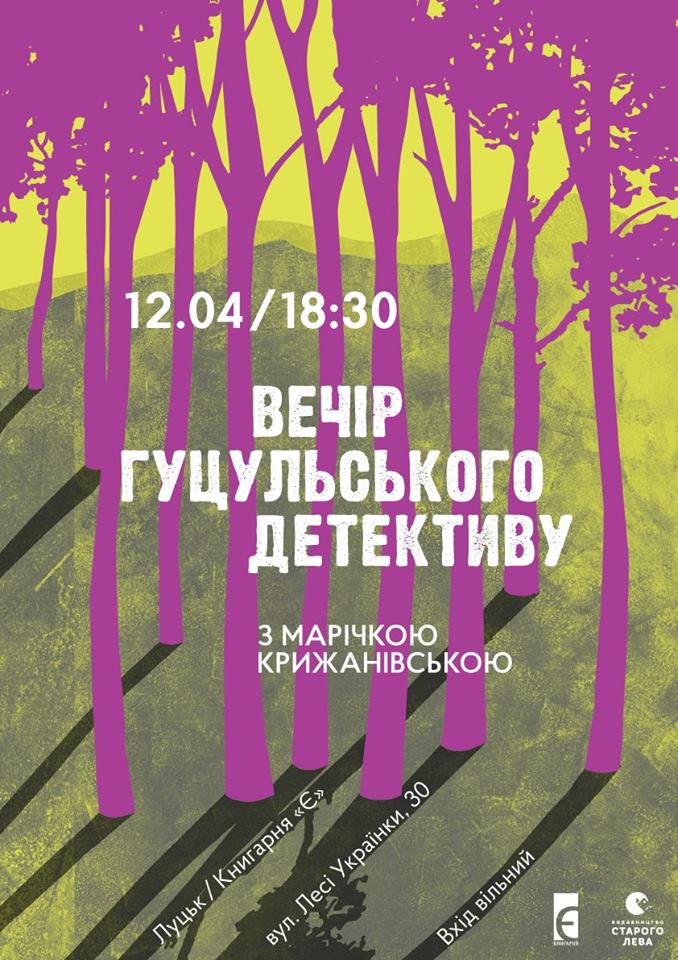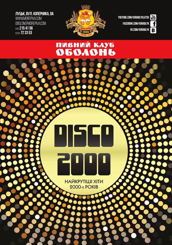 In ROCK: BEST ROCK & BLUES HITS у пивному клубі «Майдан» | 11 квітняВечір гуцульського детективу з Марічкою Крижанівською у книгарні «Є» | 12 квітняТільки хіти. Танці в пивному клубі «Оболонь» | 12 квітняКонцерт Олени Гончарук у Палаці культури міста Луцька | 12 квітня«Чорні черешні». Вечір гарної атмосфери та хорошої музики в пивному клубі «Майдан» | 12 квітняВиставка Володимира Лободи «Сотня» в Музеї сучасного українського мистецтва Корсаків | 12 квітняРетро-фольк квартет «Стара шухляда» в пивному клубі «Майдан» | 12 квітняКавьор-паті зі Степаном Горбиком у Pub Oldskull | 13 квітняСнігове бульбашкове шоу «Leo dreams show» у Палаці культури міста Луцька | 13 квітняБК «Старий Луцьк» – БК «Маріуполь» у Волинській дитячо-юнацькій спортивній школі | 13 квітняВиступ Олеся Целюха в пивному клубі «Оболонь» | 13 квітняШвидкі побачення в Bar&Grill «На вогні» | 13 квітняЛекція «Золота доба руського лицарства» у Центрі туристичної інформації та послуг | 13 квітняГра-читанка «Човняр» від театру-студії «Гармидер» у Луцькому будинку культури | 14 квітняПублічна лекція «Забуті пам’ятники Луцька» у Волинському краєзнавчому музеї | 14 квітняПостановка «День народження кота Леопольда» у Волинському обласному академічному музично-драматичному театрі імені Тараса Шевченка | 14 квітняДиско 2000-х у пивному клубі «Оболонь» | 14 квітняВистава «Криза» у Волинському обласному академічному музично-драматичному театрі імені Тараса Шевченка | 14 квітня«Троянда»: розмова про прозу та поезію з Мирославом Лаюком у книгарні «Є» | 15 квітняВідкрита розмова з Ганною Гопко в РЦ «Промінь» | 17 квітняСимфонічний рок-оркестр «Brevis» у Волинському обласному академічному музично-драматичному театрі імені Тараса Шевченка | 17 квітняПоказ стрічки «Боги/Bogowie» в РЦ «Промінь» | 17 квітняВистава «Обережно – жінки» у Волинському обласному академічному музично-драматичному театрі імені Тараса Шевченка | 18 квітняМістер СНУ імені Лесі Українки у Волинському обласному академічному музично-драматичному театрі імені Тараса Шевченка | 18 квітня